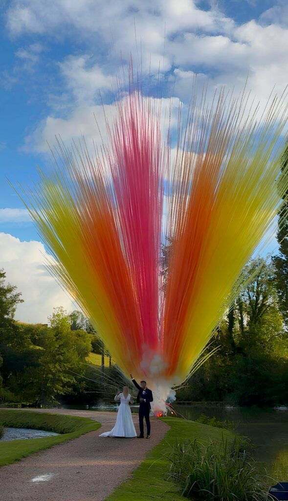 2025 a aussi été l’année de l’amour. Nous avons eu le privilège d’accompagner plusieurs couples pour le plus beau jour de leur vie. Au-delà des traditionnels bouquets finaux nocturnes, Lueur du Ciel a innové en réalisant des feux de jour. Ces spectacles colorés et sonores apportent une touche d’originalité spectaculaire aux sorties de cérémonie ou aux vins d’honneur, prouvant que la magie peut opérer même sous le soleil.